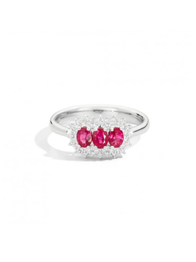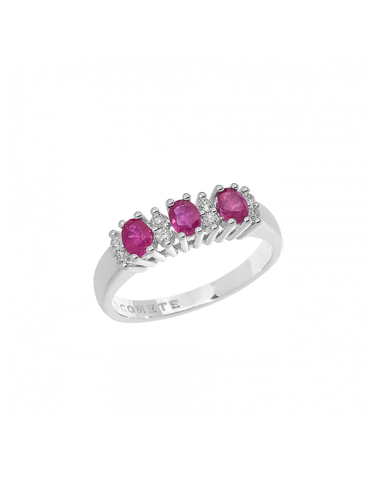 ANELLO DONNA TRILOGY IN ORO BIANCO CON DIAMANTI E RUBINI OVALI COMETE GIOIELLI