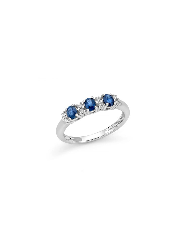 ANELLO DONNA TRILOGY IN ORO BIANCO CON ZAFFIRI BLU E DIAMANTI MILUNA -