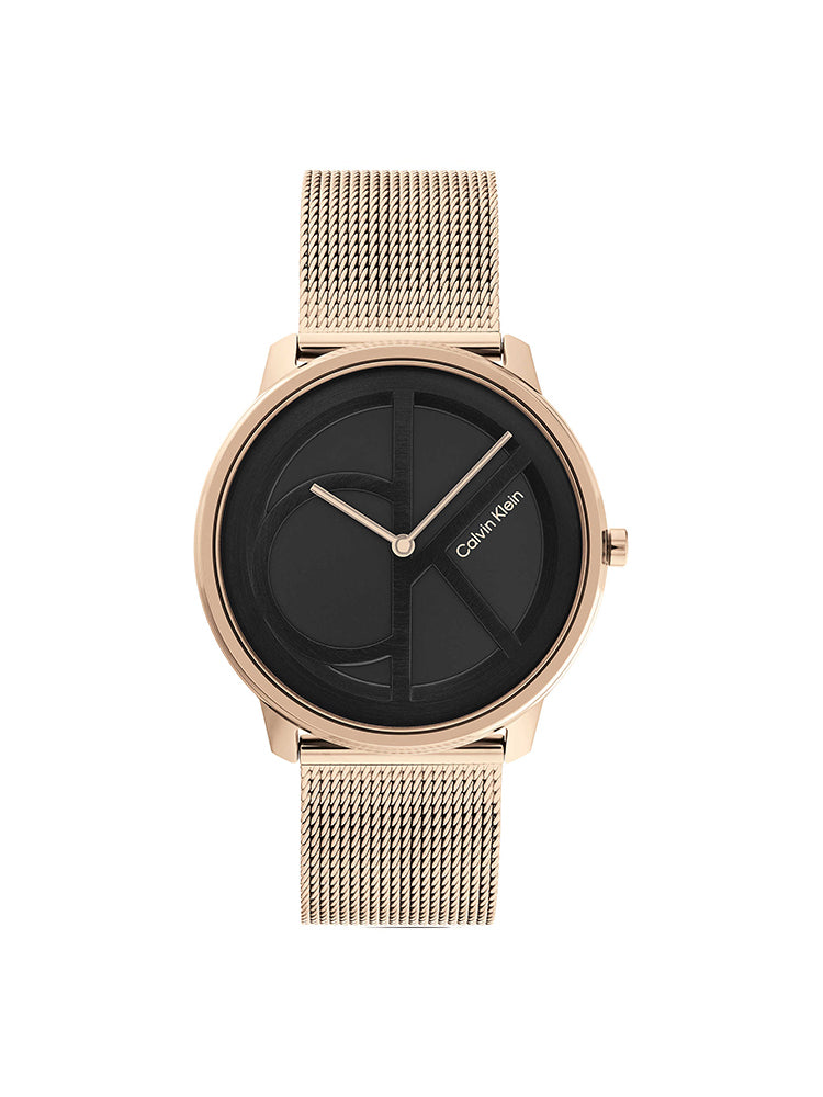 OROLOGIO UOMO SOLO TEMPO DORATO CON QUADRANTE NERO ICONIC MESH CALVIN KLEIN -