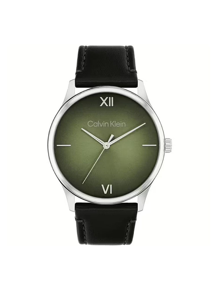 OROLOGIO UOMO SOLO TEMPO ASCEND QUADRANTE VERDE CINTURINO IN PELLE NERA CALVIN KLEIN -
