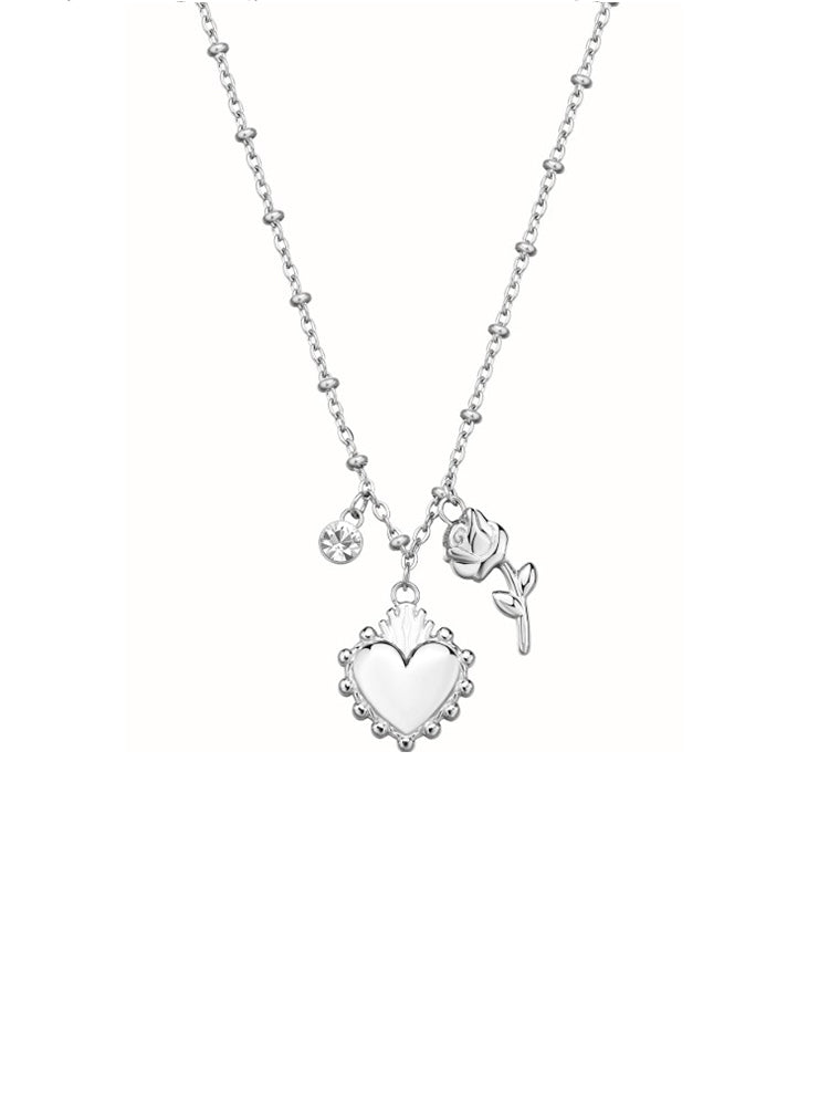 COLLANA DONNA IN ACCIAIO CON CUORE E ROSA PENDENTE BROSWAY -
