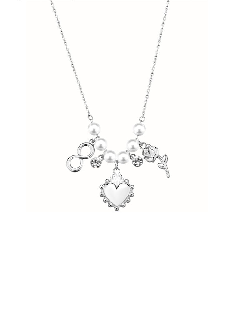 COLLANA DONNA IN ACCIAIO CON CUORE, ROSA E INFINITO PENDENTI BROSWAY -