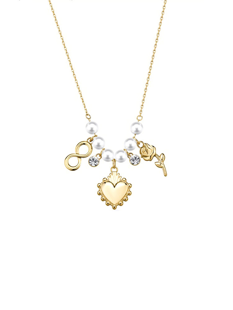 COLLANA DONNA IN ACCIAIO DORATO CON CUORE, ROSA, INFINITO E ZIROCNI PENDENTI BROSWAY -