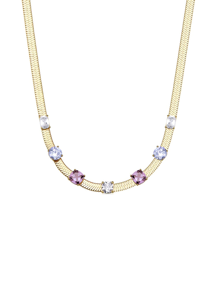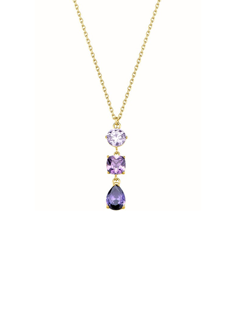 COLLANA DONNA DREAMING IN ACCIAIO DORATO CON ZIRCONI PENDENTI COLOR AMETISTA BROSWAY -