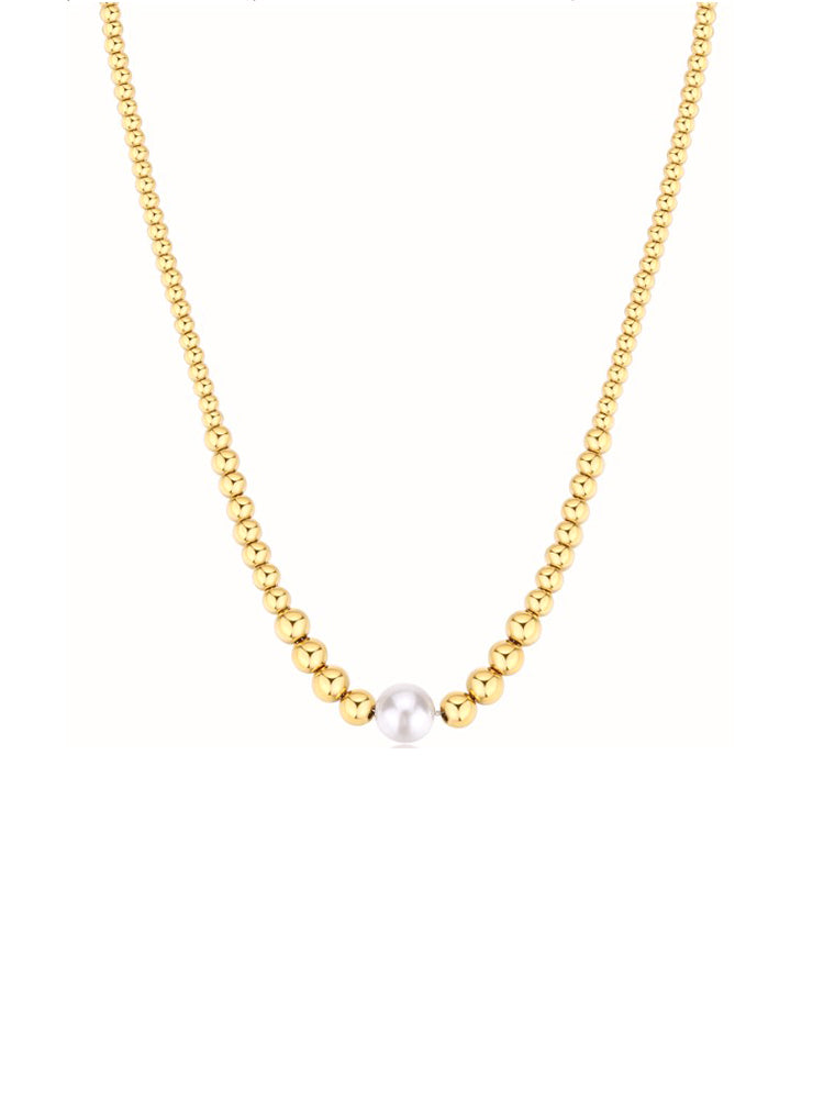 COLLANA DONNA A SFERE IN ACCIAIO DORATO CON PERLA CENTRALE BROSWAY -