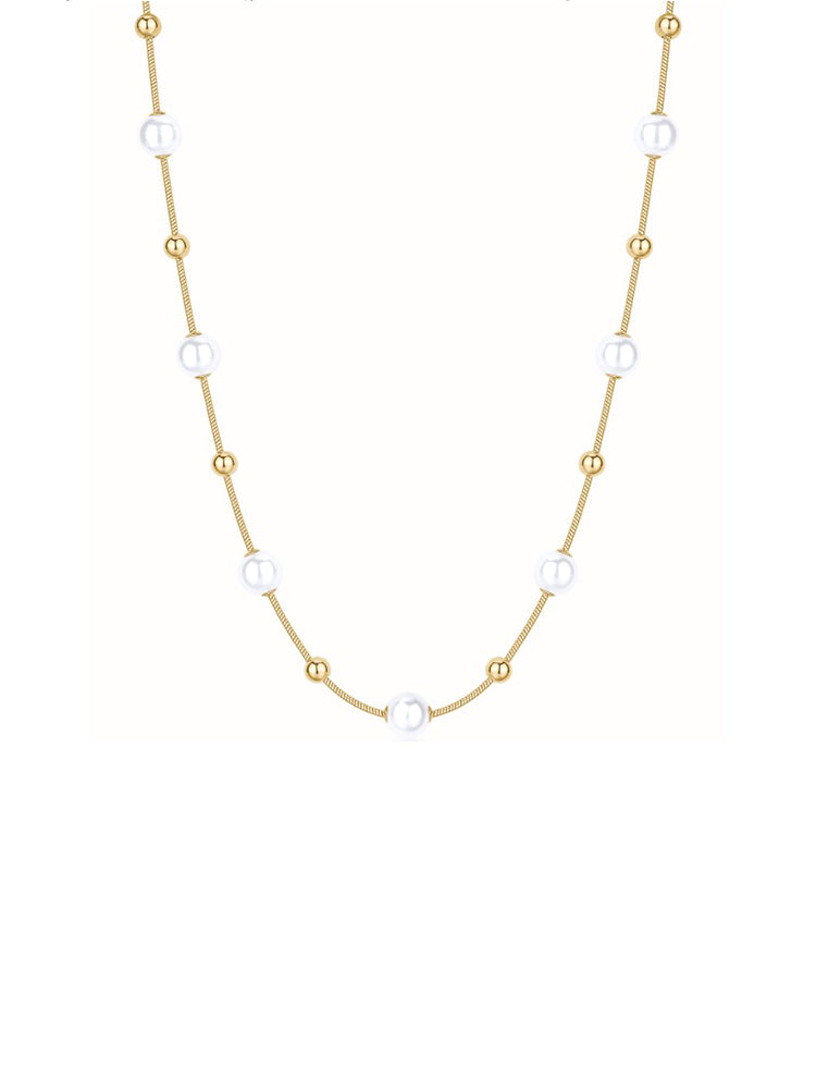 COLLANA DONNA GIROCOLLO IN ACCIAIO DORATO CON PERLE E SFERE BROSWAY -