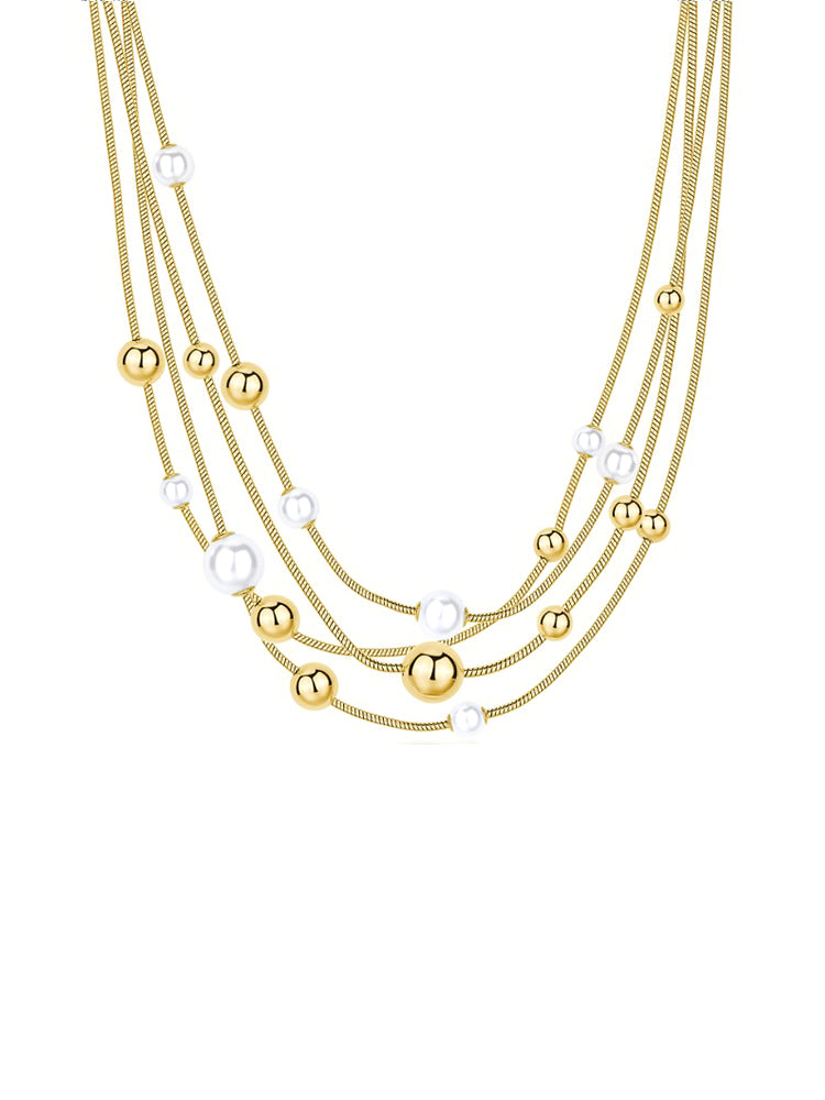 COLLANA DONNA MULTIFILO IN ACCIAIO DORATO CON SFERE E PERLE BROSWAY -