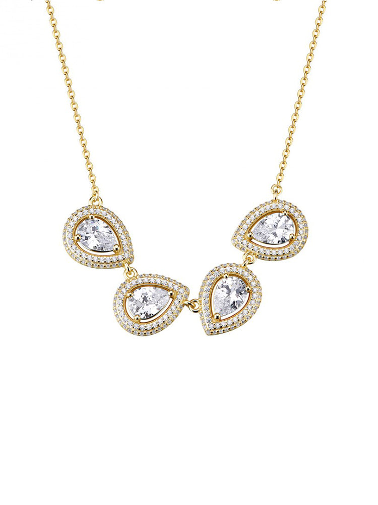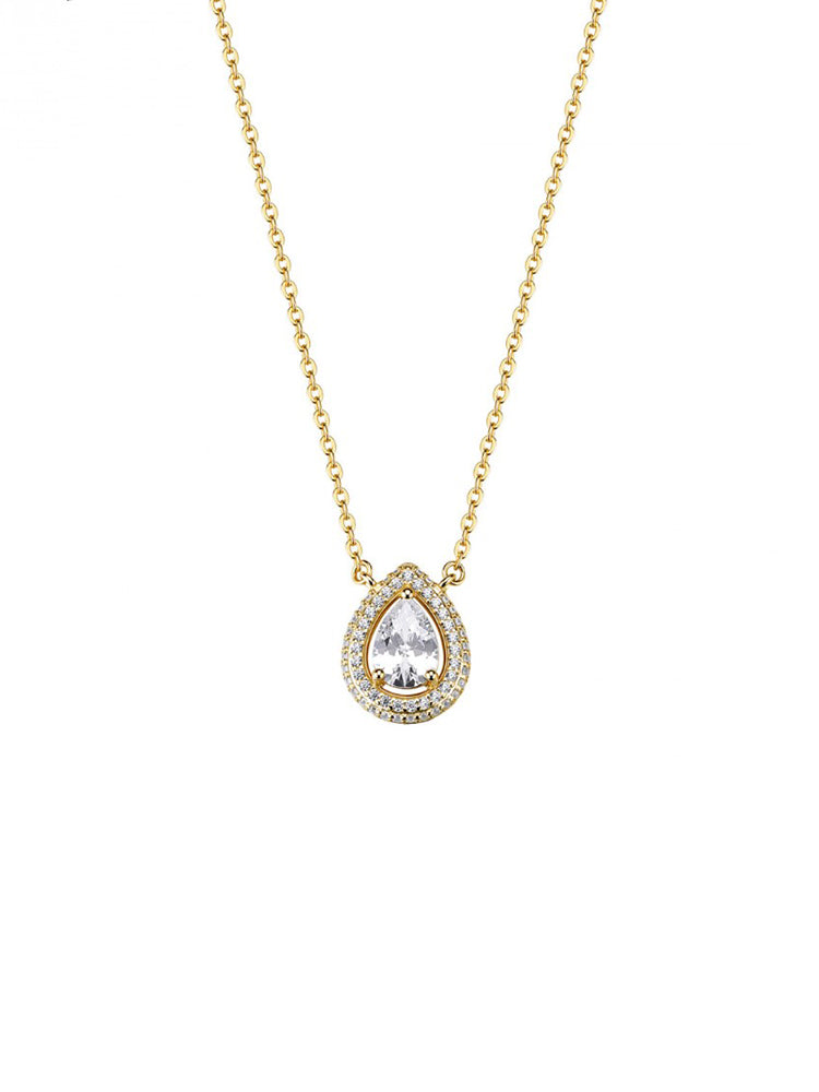 COLLANA DONNA ANNA IN ARGENTO DORATO CON ZIRCONE PENDENTE A GOCCIA ROSATO -