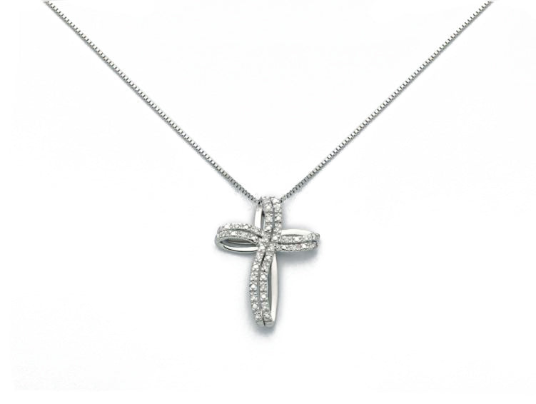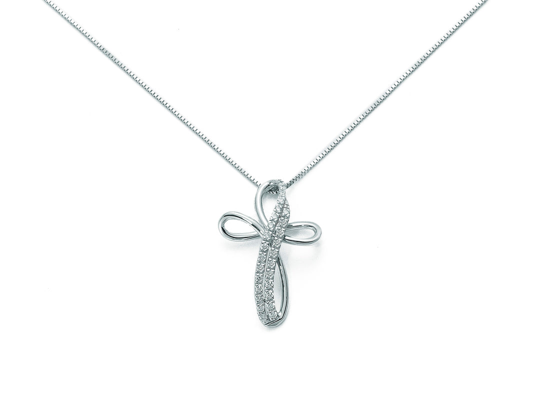 COLLANA DONNA, CROCE IN ORO BIANCO E DIAMANTI MILUNA -