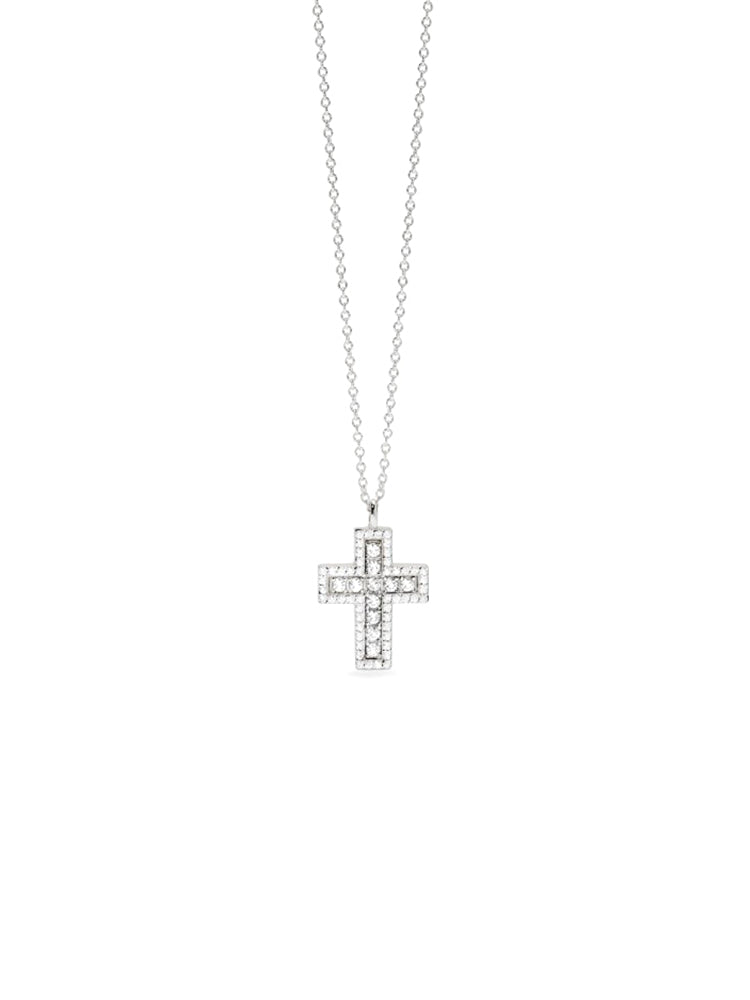 COLLANA DONNA CON CROCE PENDENTE CON ZIRCONI BIANCHI MABINA GIOIELLI -