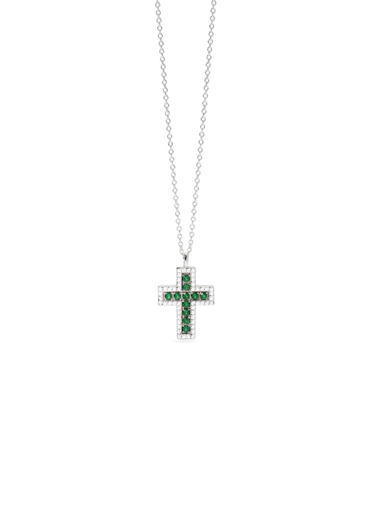 COLLANA DONNA CON CROCE PENDENTE CON SMERALDI SINTETICI MABINA GIOIELLI