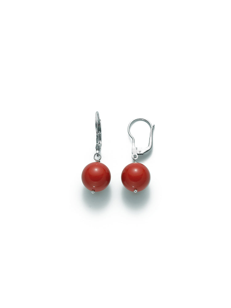 ORECCHINI DONNA PENDENTI CON PERLE E CORALLO ROSSO MILUNA -