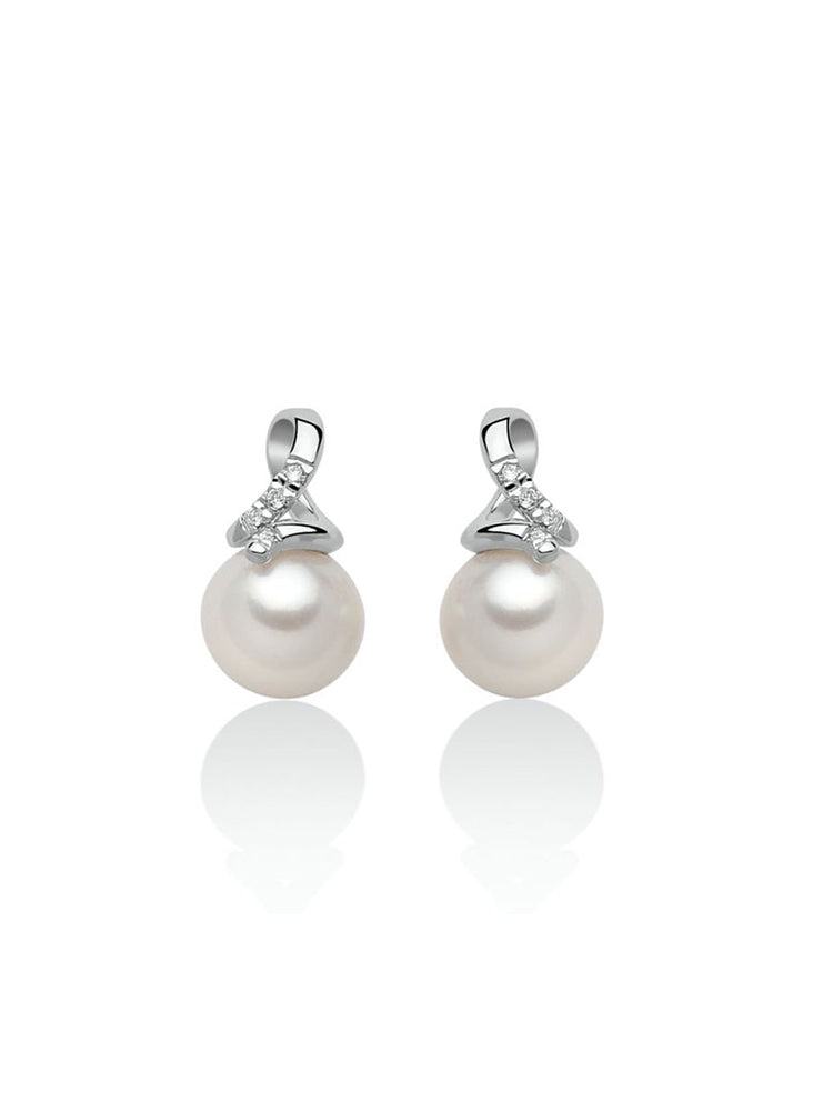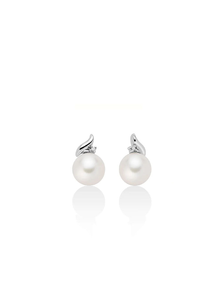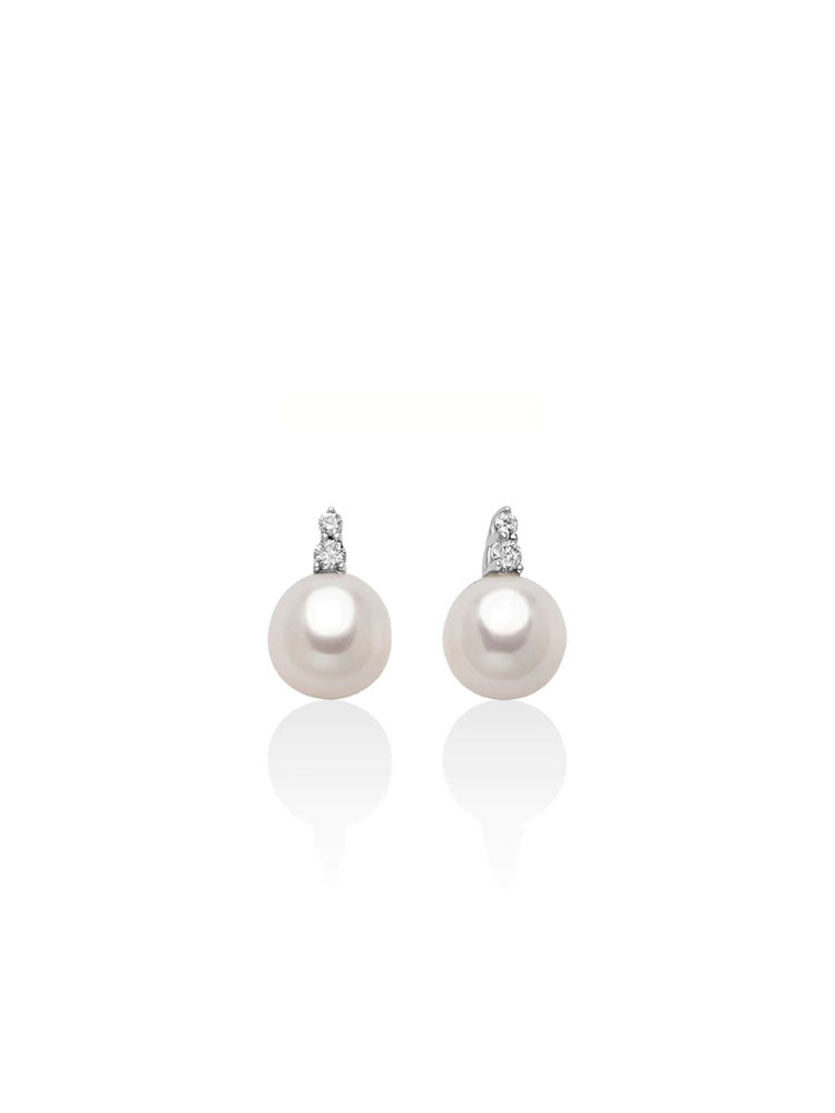 ORECCHINI DONNA IN ORO BIANCO 18KT CON PERLA 7,5/8 E DIAMANTI MILUNA -